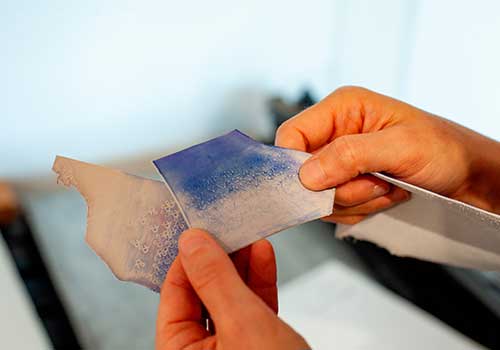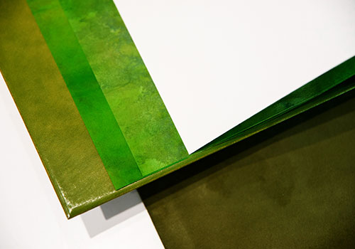 Julie Auzillon approached the Fondation Rémy Cointreau in 2023 to develop two new techniques for bookbinding. The first is to complete the decor and colouring of her bindings with a rotogravure technique, in collaboration with Fanny Boucher (Master of Art in rotogravure). The second project is based on the application of the micro-drilling technique to bookbinding.