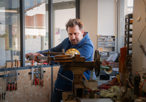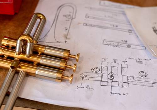 Adrien a pour projet de relancer la production de trompettes françaises. Il s’inspire de l’héritage des grands facteurs de cuivre de l’école française tout en intégrant des innovations techniques pour répondre aux exigences contemporaines des musiciens.