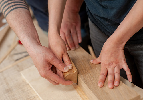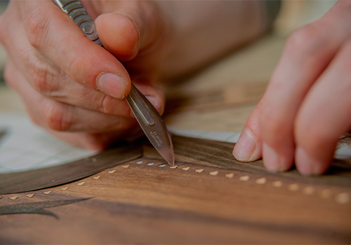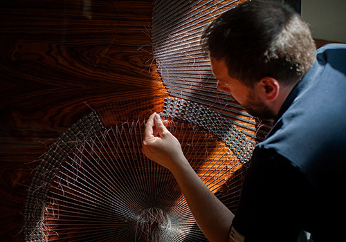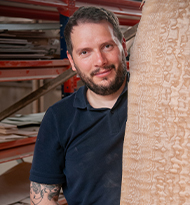 Diplômé en 2012, Jean-Brieuc crée son atelier d’ébénisterie et travaille seul pendant cinq ans. Il s’entoure ensuite d’une équipe pour se consacrer à la broderie sur bois, une technique déjà initiée à l’école.