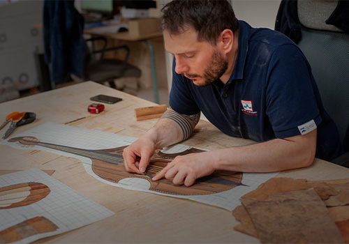 Ébéniste, marqueteur et brodeur sur bois, Jean-Brieuc Chevalier s’est orienté vers ce métier après un CAP ébénisterie à Tréguier, suivi d’un BMA et d’un DMA dans la Sarthe. Confronté à un problème technique durant ses études, il a trouvé une solution grâce à la couture, développant ainsi sa spécialité : la marqueterie et la broderie sur bois.