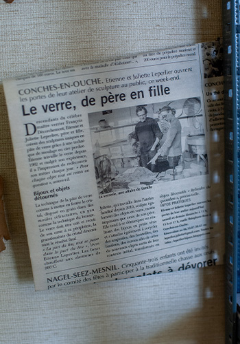 Lorsque son père décède, Juliette reprend l’atelier et se réapproprie la technique mise au point un siècle plus tôt par son arrière-grand-père. Investie dans la transmission, elle a obtenu la certification Qualiopi pour dispenser des formations payantes et propose 3 ou 4 fois par an des stages de sculpture sur verre. Juliette accueil également des stagiaires chaque année : « J’aime beaucoup transmettre les connaissances que j’ai moi-même apprises ici, dans cet atelier.”