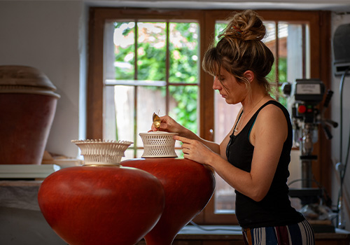 Juliette Vivien, héritière d’une famille d’artistes et d’artisans, a été initiée à la céramique dès son enfance par son grand-père. Un héritage précieux qu’elle honore encore en se servant des outils que ce dernier lui a transmis !