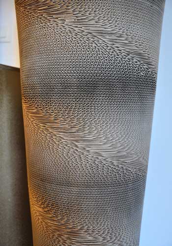 Marie-Anne Thieffry a une conscience écologique forte. Elle détourne le carton de récupération et le façonne selon son imagination. Elle expérimente ce matériau dont la texture douce mais brut à la fois lui offre la possibilité de jouer avec les volumes, les pleins et les vides. Elle cherche inlassablement à faire évoluer ces techniques pour créer des univers souvent inattendus.