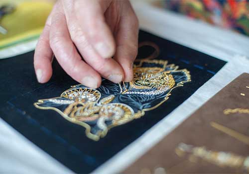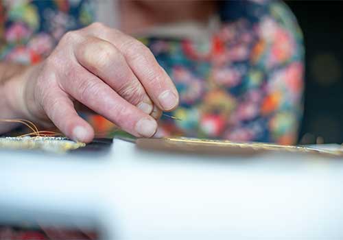 La Fondation Rémy Cointreau a soutenu Sylvie Deschamps dans l’acquisition d’une machine à broder en 2021.